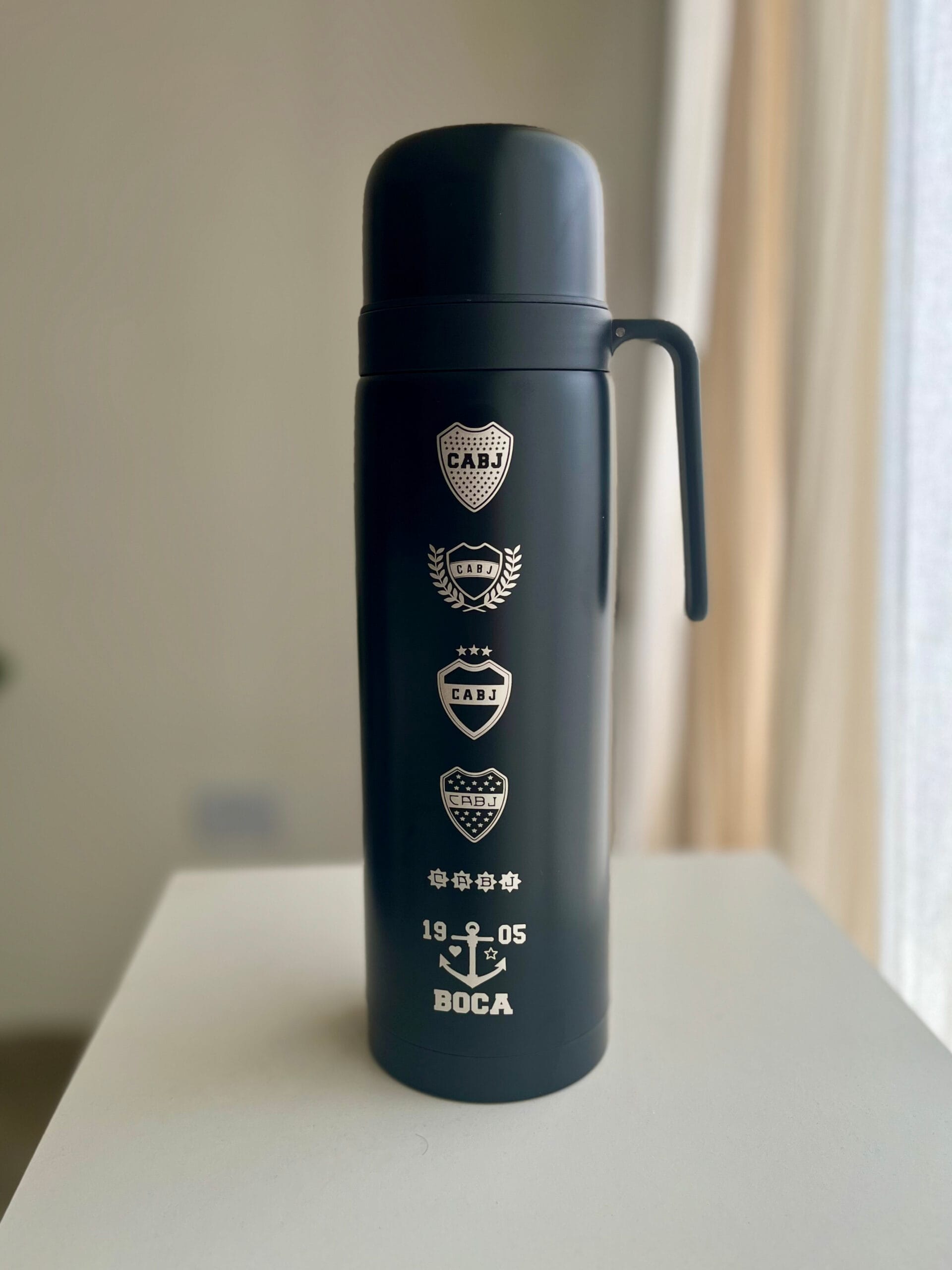 💣 Termo media manija negro grabado a láser con los escudos oficiales de Boca Juniors.