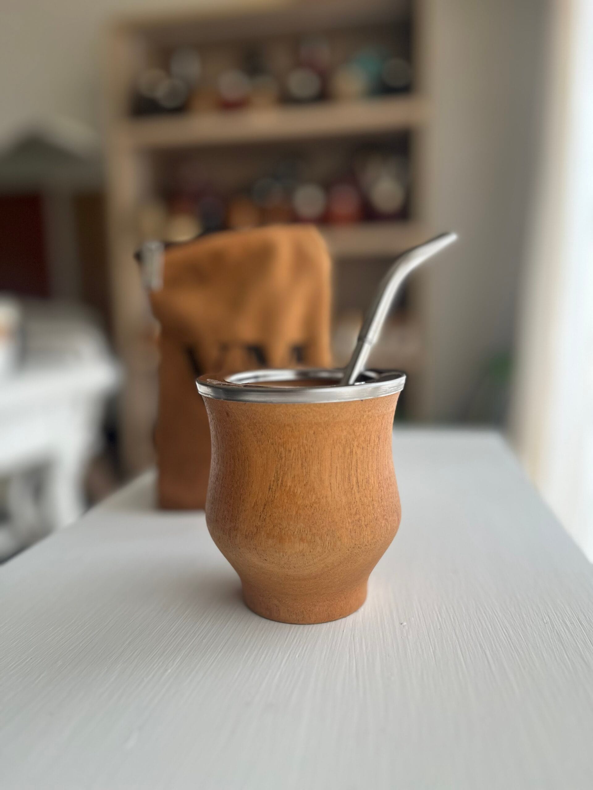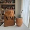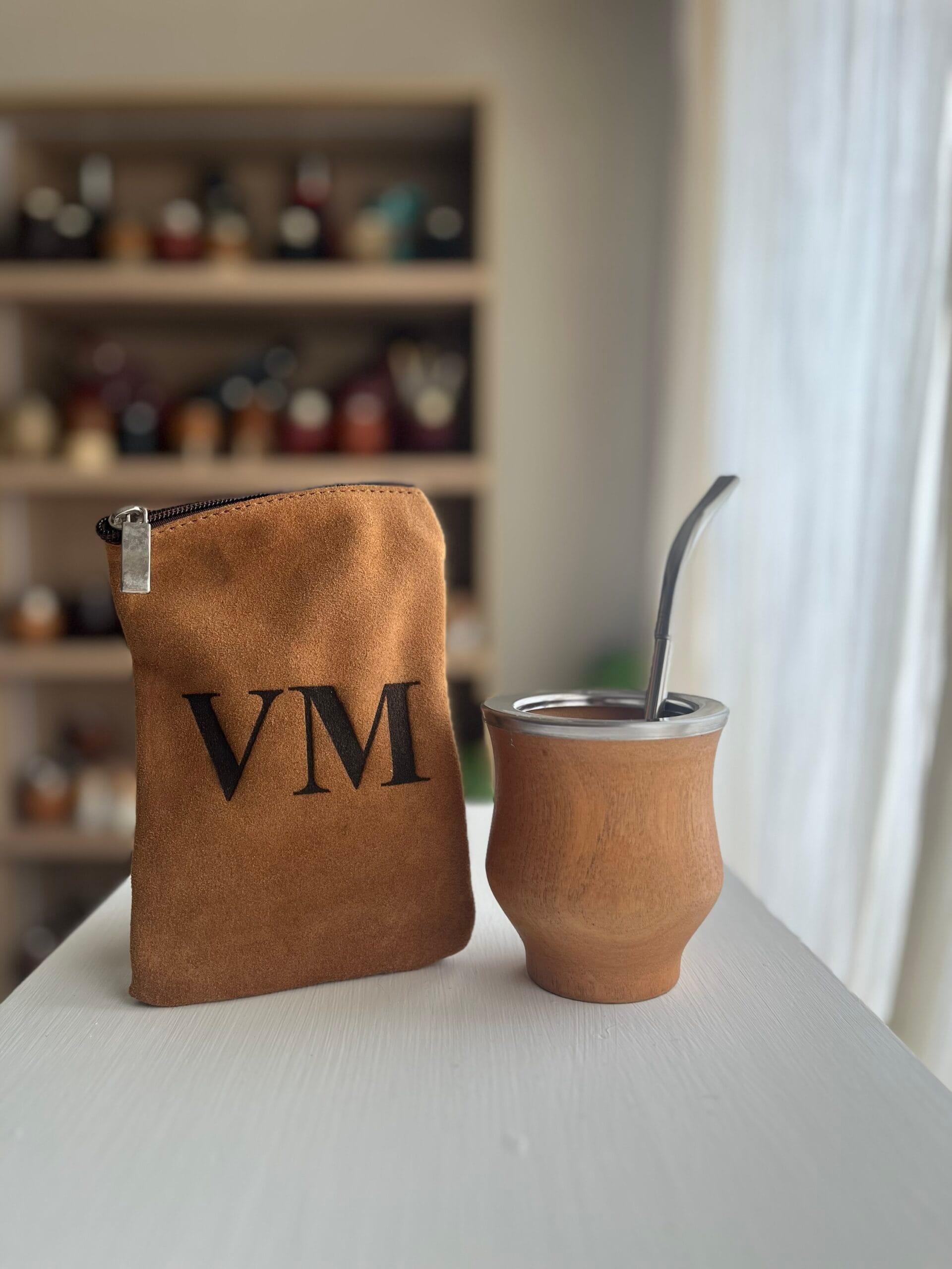 • Yerbera de cuero gamuzado de 360 g, personalizable con tus iniciales grabadas o con el diseño que vos quieras.