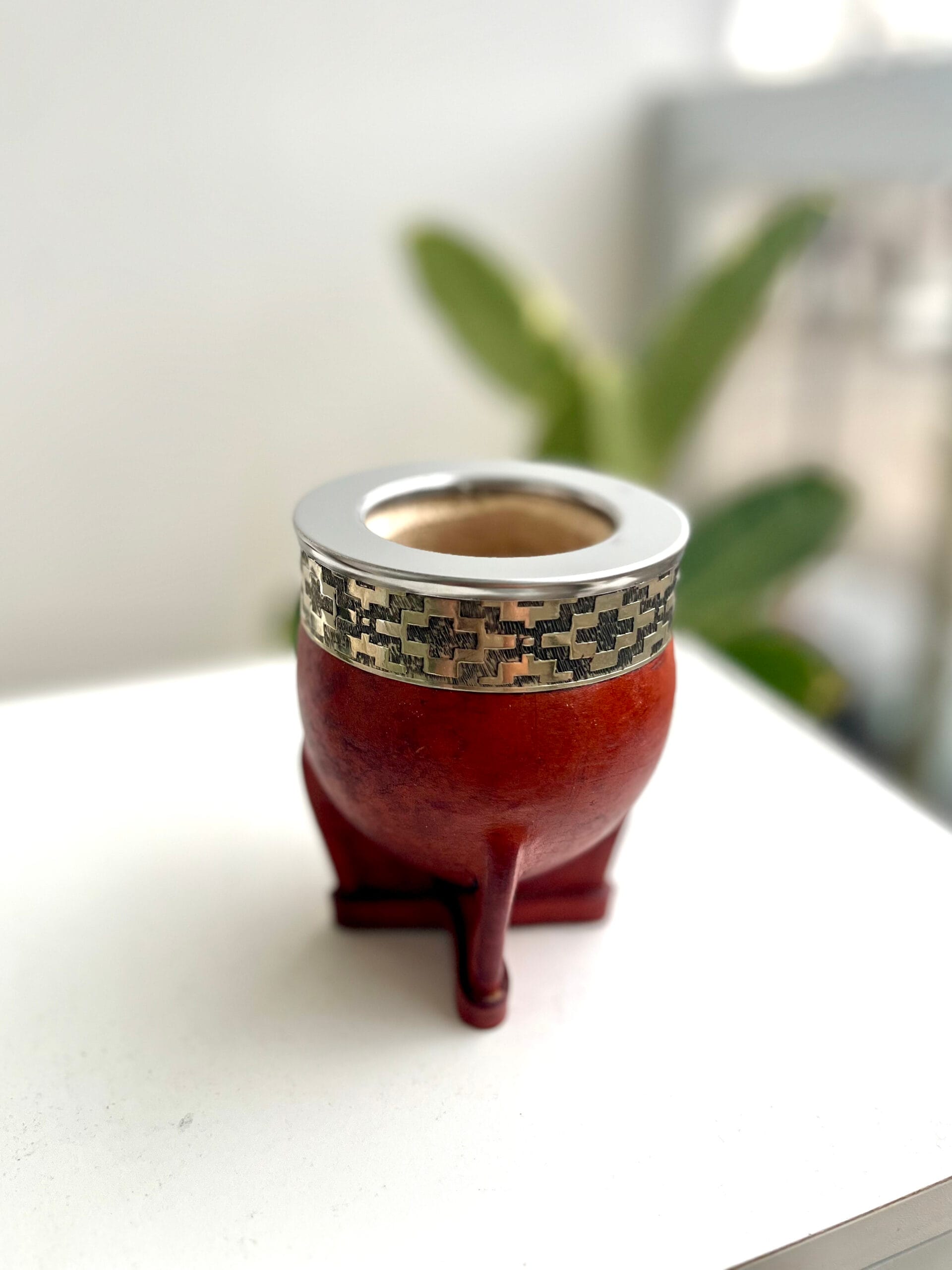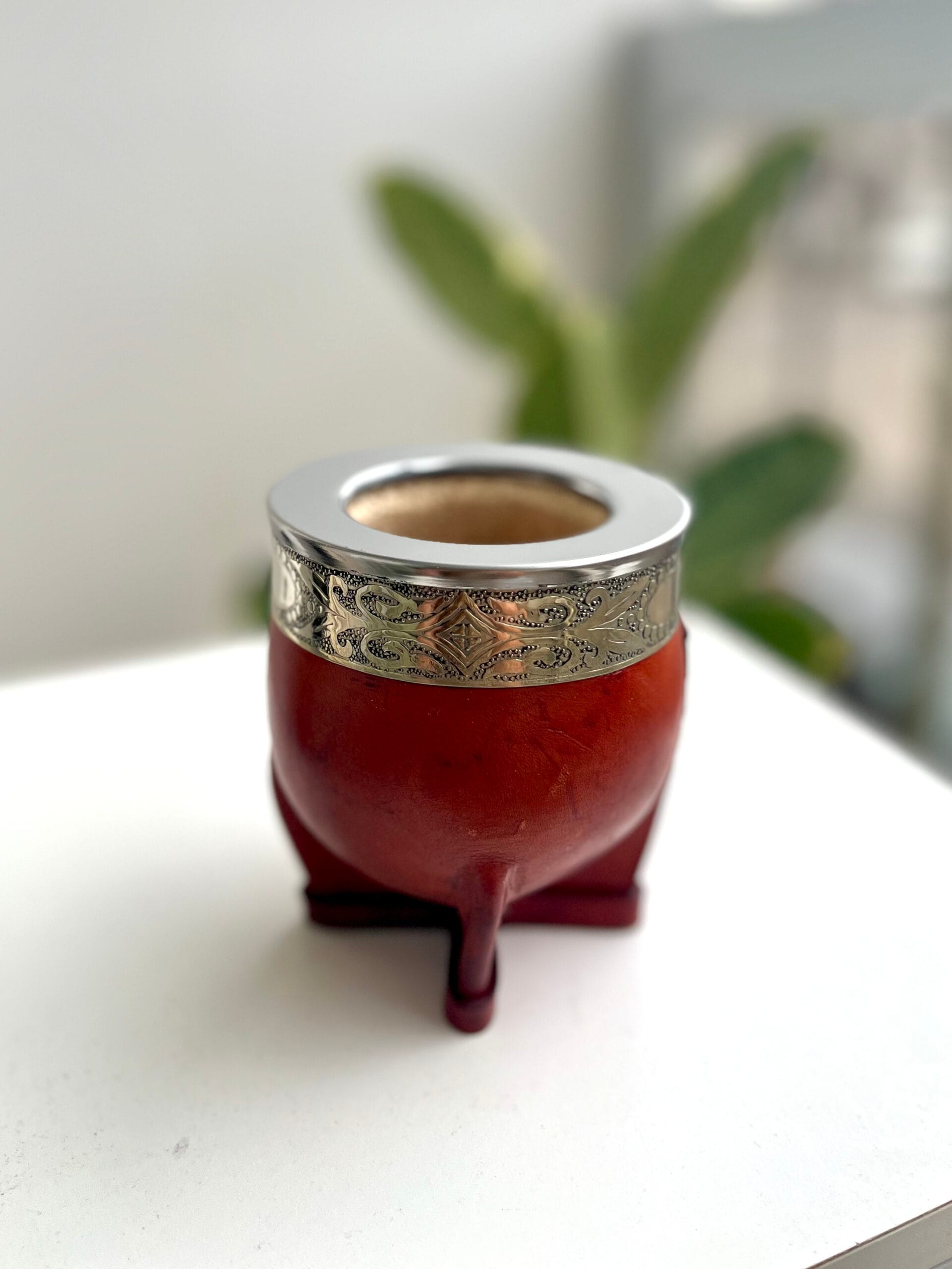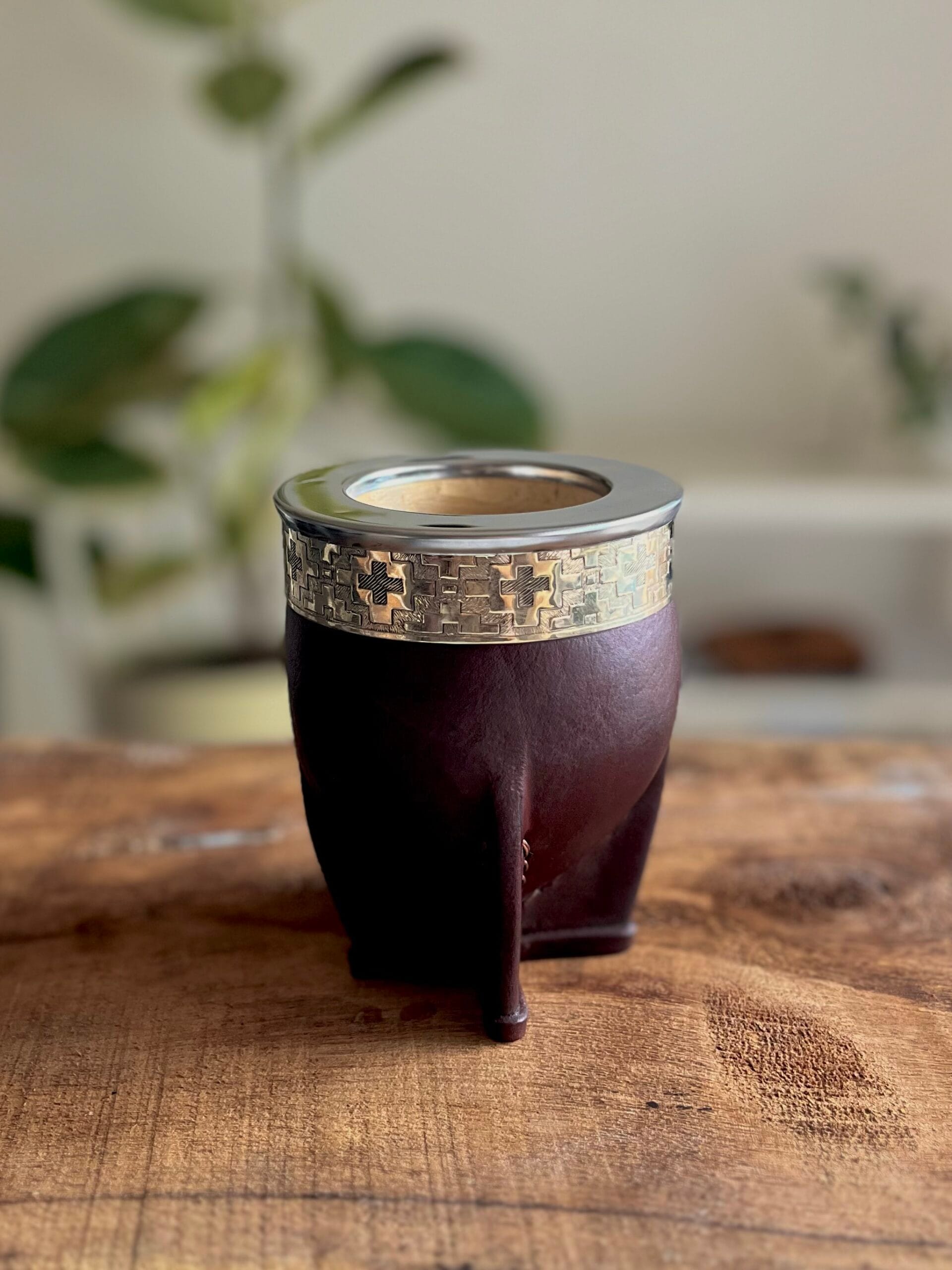 Un mate imperial clásico y elegante. Hecho en calabaza natural forrada en cuero, con virola lisa y fleje de alpaca, que aportan resistencia y estilo. Al ser un fruto natural, cada calabaza tiene forma y tamaño únicos, por lo que cada pieza es irrepetible.